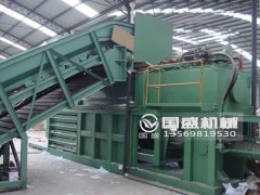 将液压打包机的打包绳子串过橙子视频IOS压缩机后面的自动弹紧装置,并顺着打包带槽安放,之后将